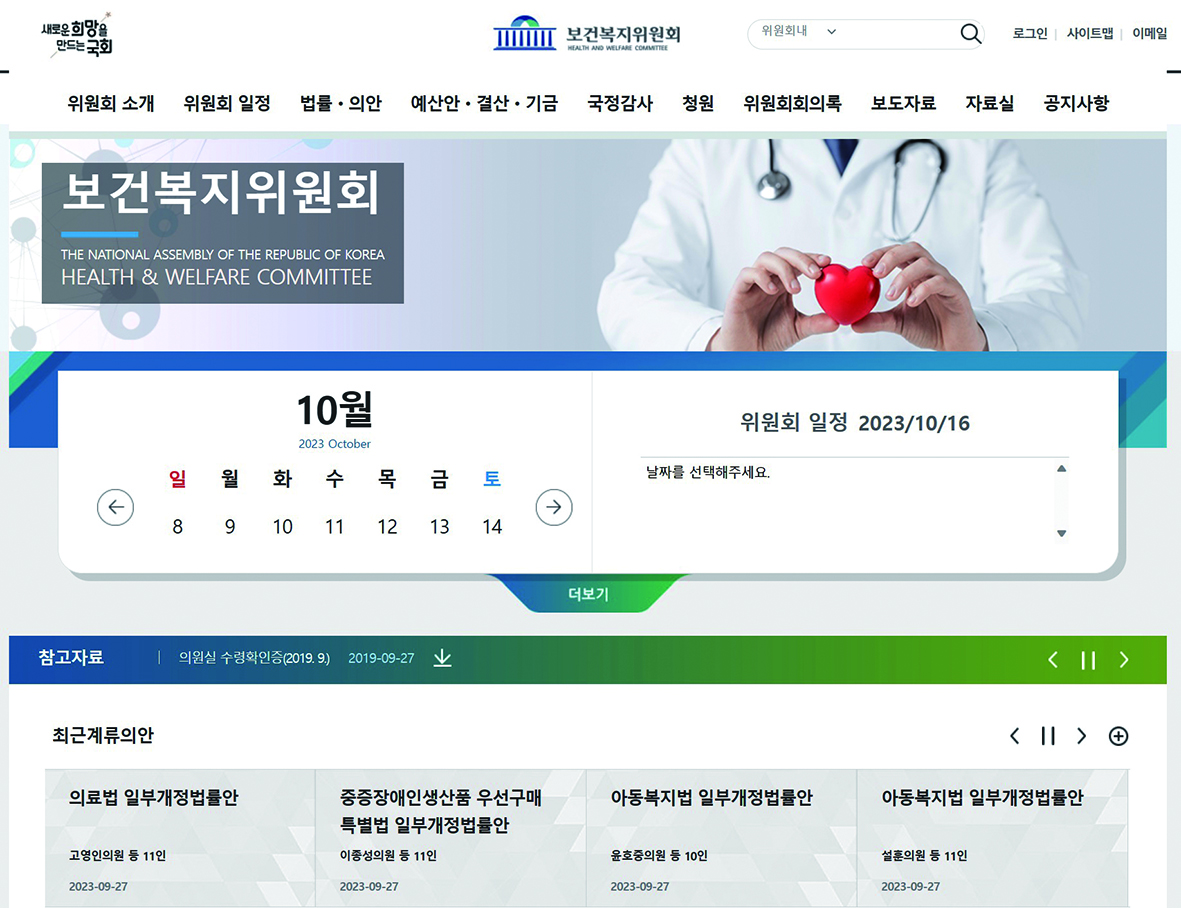 복지위는 지난달 열린 전체회의에서 △2023년도 국정감사계획서 채택의 건 △2023년도 국정감사 보고 및 서류 제출 요구의 건 △2023년도 국정감사 증인·참고인 출석 요구의 건을 의결하고, 오는 11일부터 25일까지 총 8회에 걸쳐 2023년도 국정감사를 시행하기로 했다.