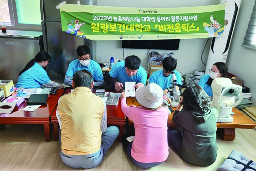 비전옵틱스 동아리 회원들은 익산시 낭산면 오미마을과 죽산마을, 남원시 보절면 양촌마을과 주천면 숲속마을길마을을 찾아 어르신들의 근용안경을 처방 보급하고, 착용안경의 수리 조정 및 세척을 통해 편안한 안경착용을 지원했다. 또한 농촌 어르신들을 대상으로 안보건 교육을 실시하는 등 전공을 살린 다양한 봉사 프로그램을 운영했다.