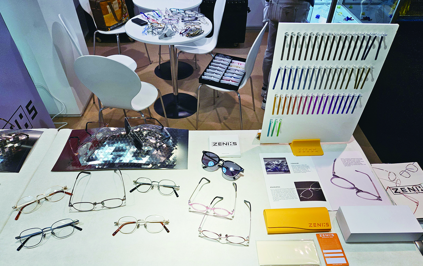 제니에스는 아노다이징 컬러기법 외에도 소재 부분에서도 독보적이다. 제니에스 제품에 사용되는 베타티타늄은 일본에서 주문 생산되는 ‘BETA153’ 티타늄으로 안경 프레임용에 최적화된 소재다. 기존 티타늄보다 탄성과 복원력이 탁월하며, 합금입자가 고르게 분포돼 아노다이징 작업 시에 발색력이 뛰어나다.