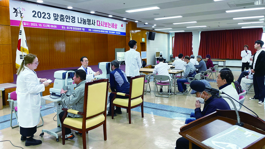 중구분회는 매년 재능기부 행사 일환으로 맞춤안경 지원을 진행해왔으나, 코로나19로 인해 지난 3년 동안은 진행되지 못했었다. 이번 행사에는 황윤걸 회장을 비롯해 윤성현 총무이사, 장민석 사업이사가 참여했으며, 중구분회에서는 박응준 분회장과 중구분회 임원 9명이 참여했다. 중구청에서는 복지정책과 맞춤지원팀 김혜선 팀장 및 직원 4명, 신일광학과 썬광학이 장비 지원으로 함께했다.