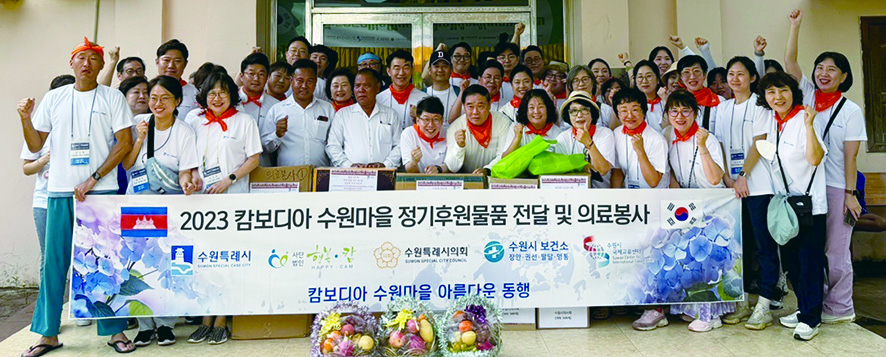 수원시안경사회(회장 김대현)가 지난 9일부터 13일까지 캄보디아 시엠립주에 위치한 수원마을에서 국제보건의료봉사를 진행했다고 최근 밝혔다. 올해로 19년째 진행되고 이 사업은 국무총리실에서 선정한 기초자치단체 공적개발원조(ODA) 최우수사례이기도 하다. 수원시안경사회를 비롯한 수원시의사회, 수원시한의사회, 수원시치과의사회, 수원시약사회를 비롯한 아주대학교병원, 동수원병원 등으로 구성된 수원시보건의료봉사단은 마을주민들을 대상으로 다양한 보건의료 진료와 위생교육 등을 진행했다.