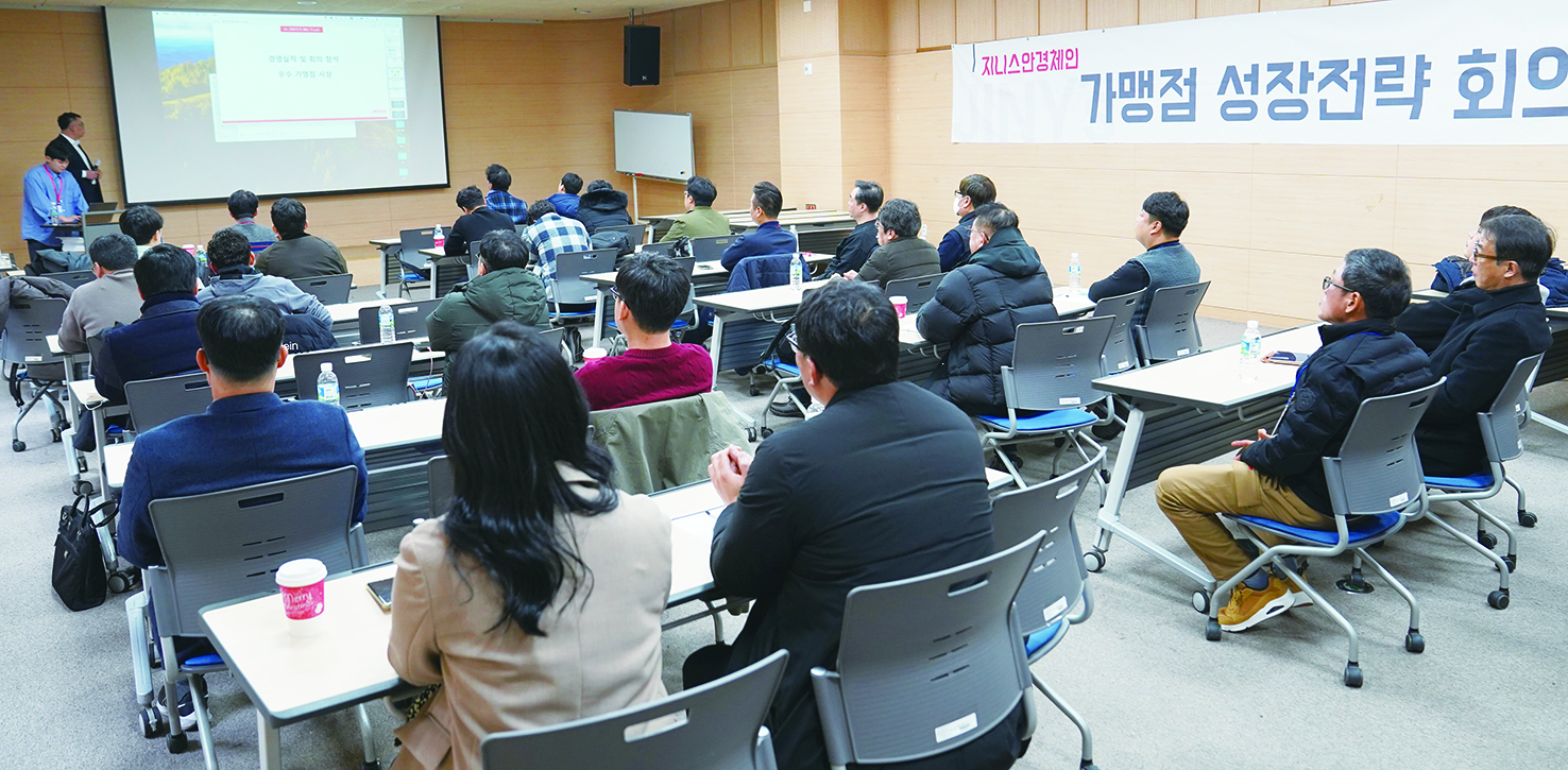 즐거운 안경쇼핑의 선두주자, 국민안경 브랜드 지니스안경체인(대표 김진희)의 2023년 12월 성장 전략회의가 지난 6일 대전광역시 위캔 센터 다목적 회의실에서 진행됐다. 전국 지니스안경체인 가맹점주 40명이 참석해 올해 마지막 성장 전략회의 열기를 뜨겁게 했다.