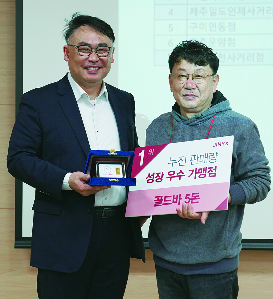 행사의 마지막은 누진다초점렌즈 판매량 성장률이 우수한 가맹점 시상과 함께 오전에 진행됐던 수주회에서 가장 많이 수주를 한 가맹점을 대상으로 골드바와 안경렌즈를 제공받을 수 있는 쿠폰을 수여했다. 누진다초점 렌즈 판매량 성장 우수 가맹점으로는 1위가 지니스 부산하단역 1번출구점, 2위가 지니스 광주운암점, 3위가 지니스 공주 신관점으로 선정됐다.