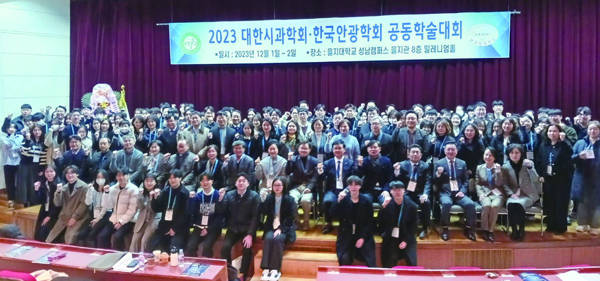 대한시과학회(회장 김정희)와 한국안광학회(회장 심현석)가 연합 주최한 ‘2023년 대한시과학회 한국안광학회 공동학술대회’가 지난 12월 1일부터 2일까지 양일간 을지대학교 을지관 8층 뉴밀레니엄홀에서 대면 및 비대면 송출 방식으로 진행됐다.