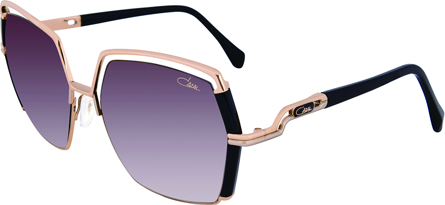 하이엔드 선글라스 진수를 보여주는 CAZAL 9502 모델이다. 선글라스 렌즈와 프론트 상단 림에 공간을 두면서 디자인적 차별화를 보여준다. 템플 라인에 각을 주고, 골드와 블랙으로 로고 플레이를 한 점이 돋보인다.