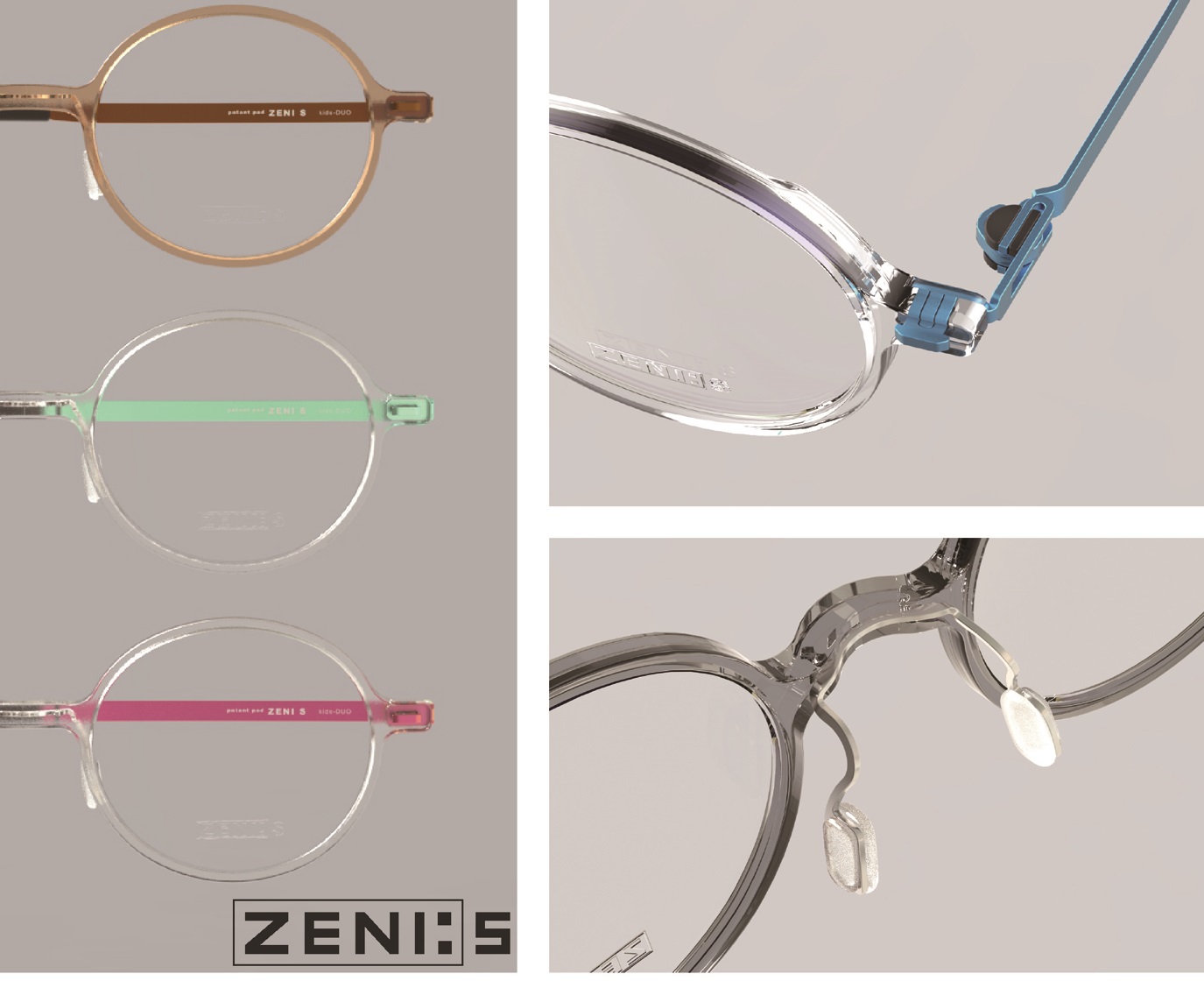 제니에스는 3중 믹스 컬러기법과 함께 2024년도 신제품에 스파인 시스템 힌지 구조를 통해 남다른 텐션을 지닌 제품을 완성했다. 인체의 척추 구조를 모티베이션 해 3개의 각기 다른 금속 구조가 하이엔드 텐션을 가능하게 해주는데, 이는 착용자가 안경을 착용시 최적의 안착감을 느낄 수 있음은 물론 안경사 피팅 시에도 보다 수월한 작업이 가능하게 한다.