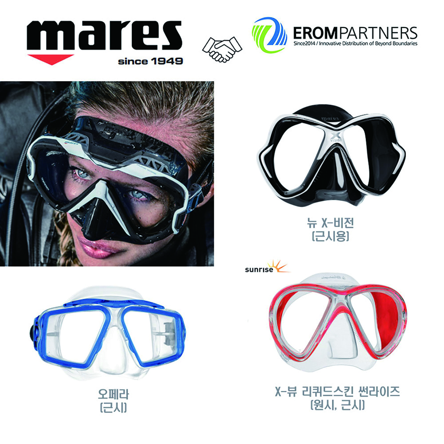 안경원 매출 효자 상품으로 급부상 중인 도수용 스노클링&다이빙 마스크를 다양하게 공급하고 있는 ㈜이롬파트너스(대표 신동성)는 지난 12월에 70년 전통의 ‘MARES’ 국내 총판사와 도수용 마스크 안경원 유통에 관한 독점공급 계약을 체결했다.