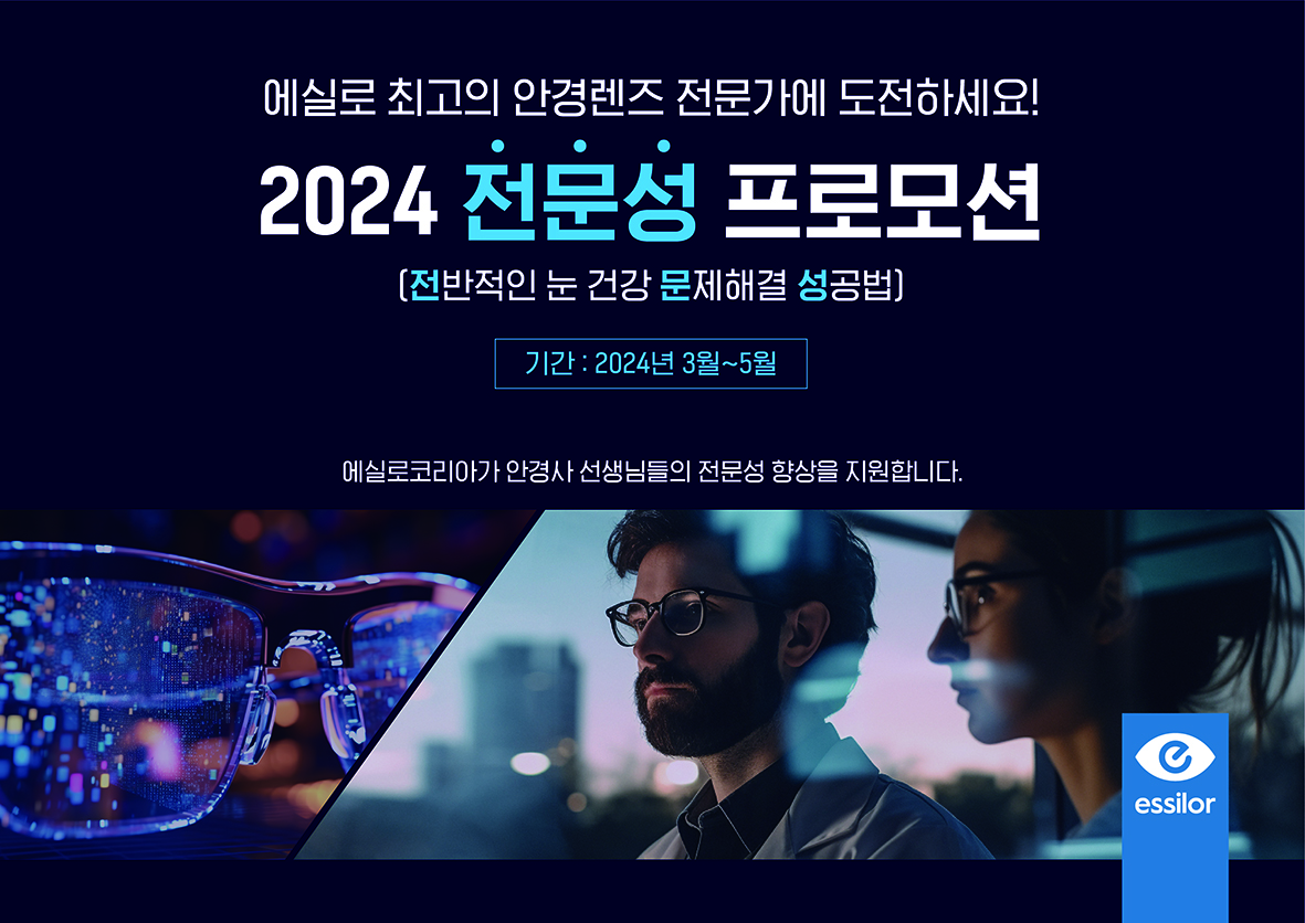 글로벌 안경렌즈 전문 기업 에실로코리아(대표 소효순)가 안경사들의 전문성 향상 지원을 위한 프로모션을 3월2일부터 5월31일까지 진행한다고 밝혔다. ‘전문성’은 전반적인 눈 건강 문제 해결 성공법의 줄임말로, 에실로코리아의 전 거래처 안경원을 대상으로 하는 프로모션이다.