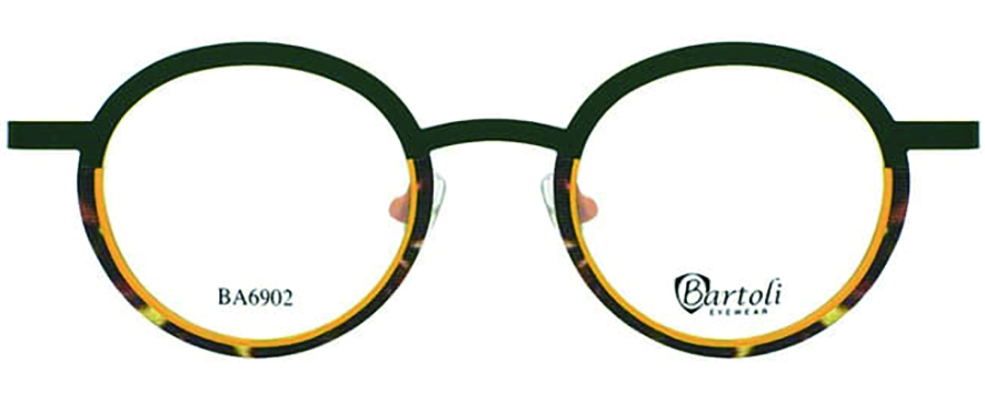 필론주식회사에서 전개하는 원형 바르톨리 수입 안경테다. 원형 온테 안경 6컬러로 제작이 됐다. 섬세한 수작업으로 제작된 안구 라인의 고급스러운 컬러가 매력적인 디자인이다. 심플하고 세련된 라운드형의 컬러풀한 안경이다. 스테인레스 스틸, 폴리에스테르, 아세테이트로 제작됐다.