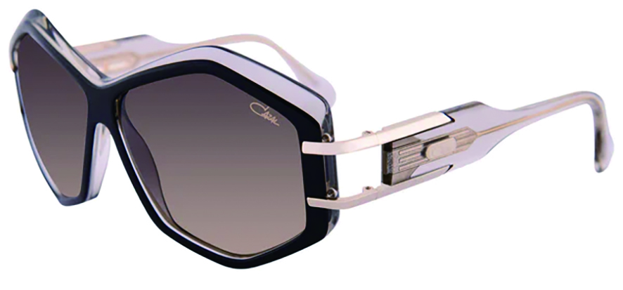 하이엔드 브랜드 카잘 선글라스다. 볼드한 프론트와 템플이 시선을 압도한다. 6각형 안구림과 유광 아세테이트가 눈길을 끈다. 오픈형 힌지와 볼두하지만 유려한 라인을 잘 살린 템플 디자인이 클래스를 보여준다.