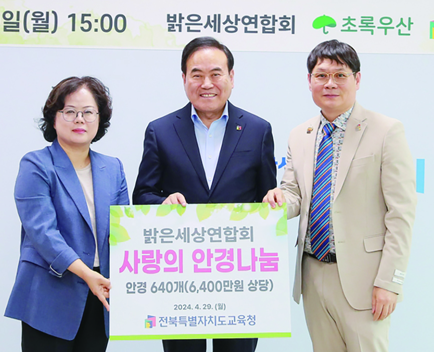 전북특별자치도교육청은 밝은세상연합회가 도내 저소득가정 학생들에게 ‘사랑의 안경’을 나눠주기로 했다고 지난달 29일 밝혔다.