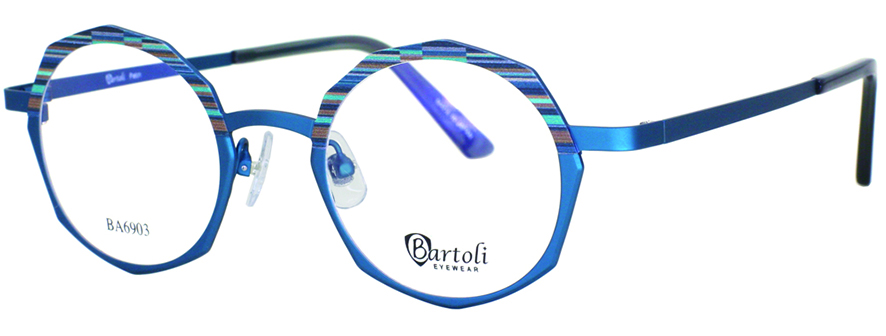 럭셔리 고급 마담용 아이웨어를 주로 유통하는 필론주식회사가 선보이는 컬러풀한 도수테 아이웨어다. 컬러는 블루 프레임이며, 소재는 고급 스테인레스 스틸, 아세테이트, 아크릴 등을 사용해 제작한 프레임이다.