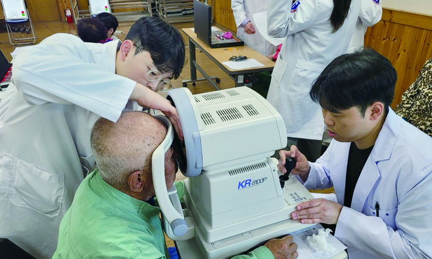 이번 봉사활동은 △예진·문진을 통한 눈건강 상태 파악 △상담에 의한 불편 해소 및 조치 △만성비감염성 질환 관련 눈건강 교육과 함께 △굴절검사에 의한 원용안경 또는 근용안경 처방이 진행됐다. 처방에 따른 무료 안경 조제 및 전달도 이뤄졌다.