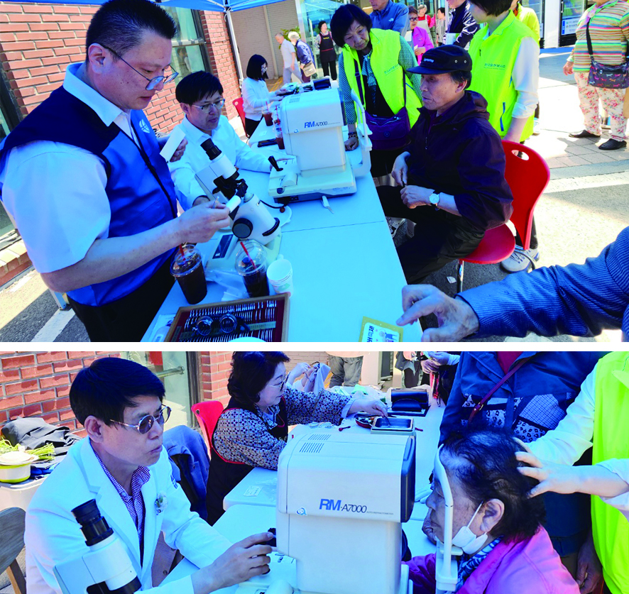 (사)대한안경사협회 인천시안경사회 노수영 회장과 박종달 직전 회장, 경기도안경사회 최병갑 전 회장 등이 지난 18일 한국 용현 봉사회와 함께 인천용현동 교회당에서 실버축제 봉사 활동을 펼쳤다.