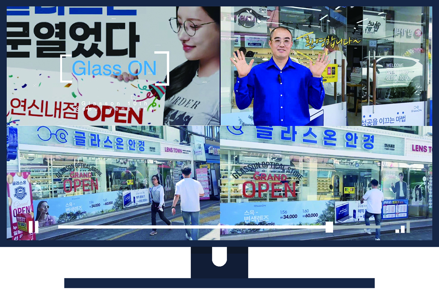 김 원장은 가만히 앉아서 고객을 기다리던 시대는 지났고, 안경원이 고객을 불러모으기 위한 홍보 방법을 강구해야 한다고 생각한 끝에 유튜브 마케팅으로 큰 화제를 불러 일으키던 글라스온안경체인을 만나게 됐다. 저렴한 가격만을 내세운 체인들이 득세하는 시장 상황 속에서 김 원장은 단순 가격 홍보가 아니라 다채로운 마케팅 기법을 통해 전 연령대 고객을 안경원으로 불러모을 수 있는 체인을 만나게 된 것이다.