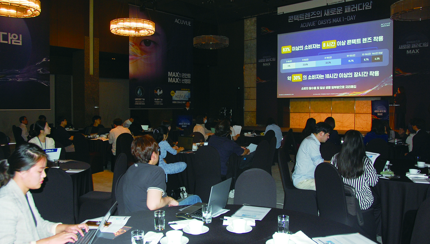 콘택트렌즈가 의료기기인 만큼 안경사 대상으로 진행한 프로모션 행사때보다 상당히 간략한 내용으로 간담회를 진행했지만 이번 신제품인 ‘아큐브 오아시스 MAX 원데이’의 기술력과 마케팅 전략에 대해서는 핵심만 뽑아 전달했다.