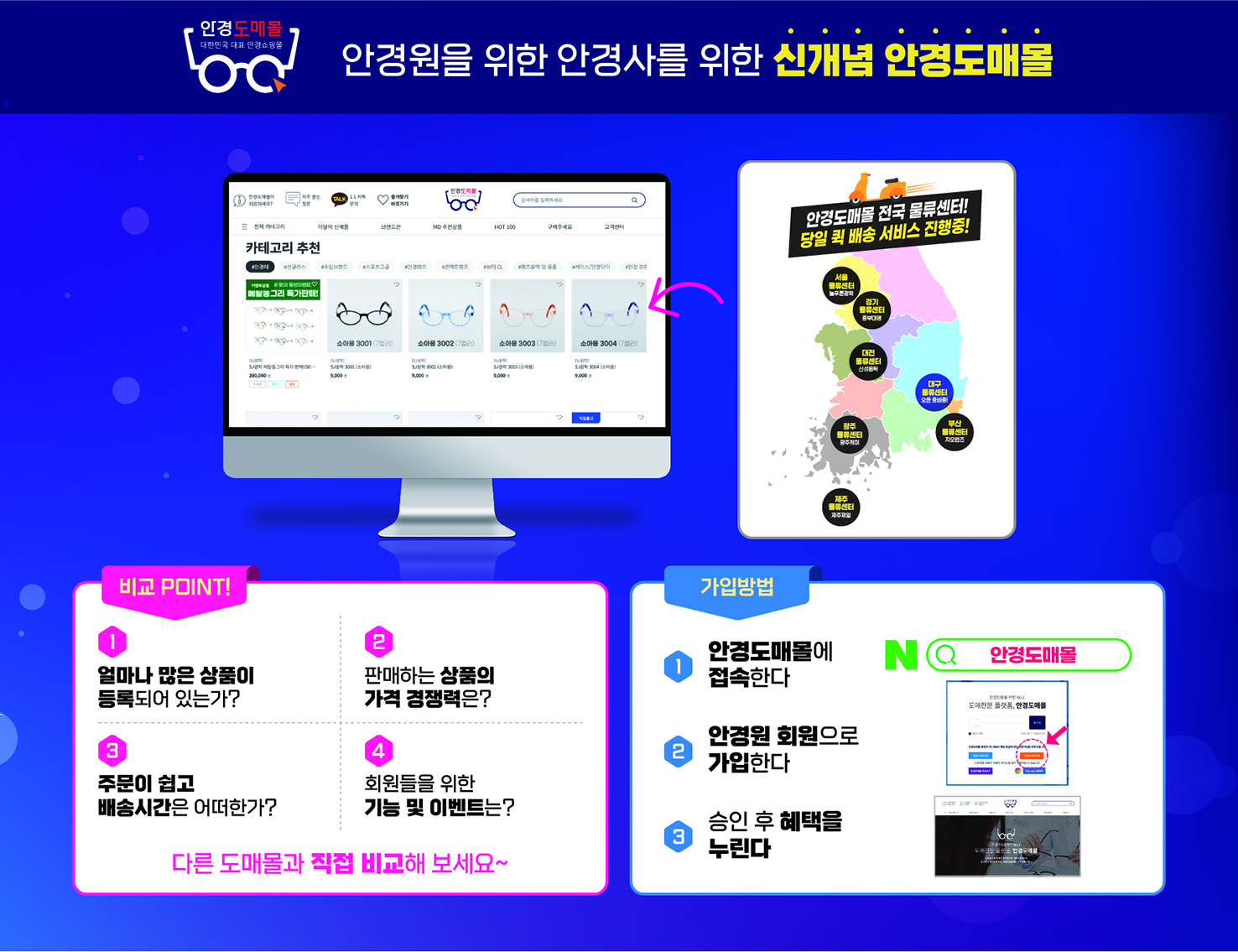 안경도매몰 관계자는 “국내 제조 및 유통업체와 안경원을 잇는 플랫폼으로서 안경도매몰의 성장과 미래는 오직 안경원의 만족과 성원에 달려 있다고 해도 과언이 아니다. 이에 어려운 시기 회원 분들에게 조금이나마 힘이 될 수 있도록 올 하반기 순차적으로 다양한 이벤트를 진행해 나갈 예정”이라며 “여러 이벤트와 더불어 판매상품 다양성 확대, 뛰어난 가격경쟁력 제공, 쉬운 주문과 빠른 배송, 풍성한 이벤트 개최 등 회원분들의 니즈와 기대에 부응할 수 있도록 더욱 최선을 다해 경주해 나가겠다” 전했다.