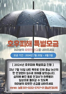 충청남도안경사회(회장 장병실)가 최근 내린 폭우로 피해를 입은 한 회원을 위한 모금활동을 진행하고 있어 훈훈한 감동을 전하고 있다.