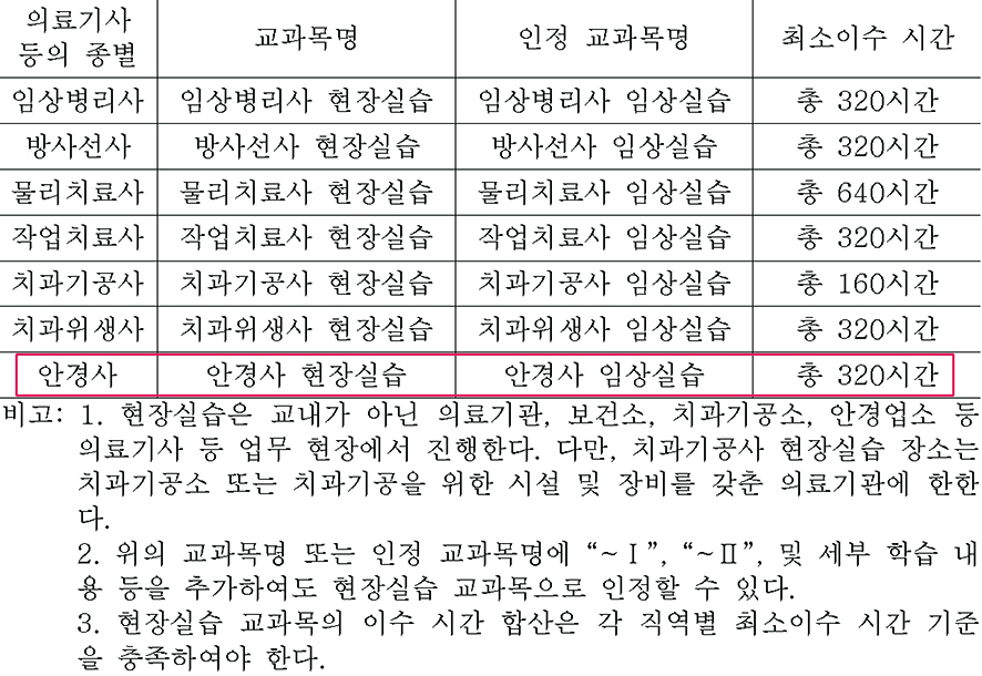 시행규칙 일부 개정안에는 먼저 직역별로 현장실습과목 최소이수시간과 실습 장소를 규정해 내실있는 현장실습이 이뤄지도록 하고, 이수 여부 확인을 위해 면허 발급 신청 시 성적증명서를 제출하게 했다. 다만, 2028년 이전에 졸업 예정인 자는 재학 당시 시행규칙이 개정되는 점을 감안해 완화된 이수시간 기준을 충족하도록 했다.