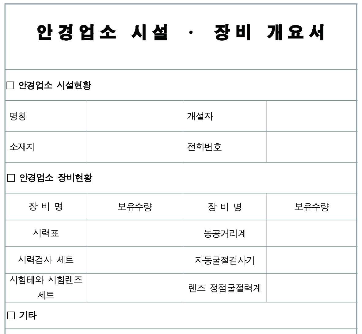 안경원 개설시 면허신고 확인서 및 시설·장비 개요서 서식도 제출해야