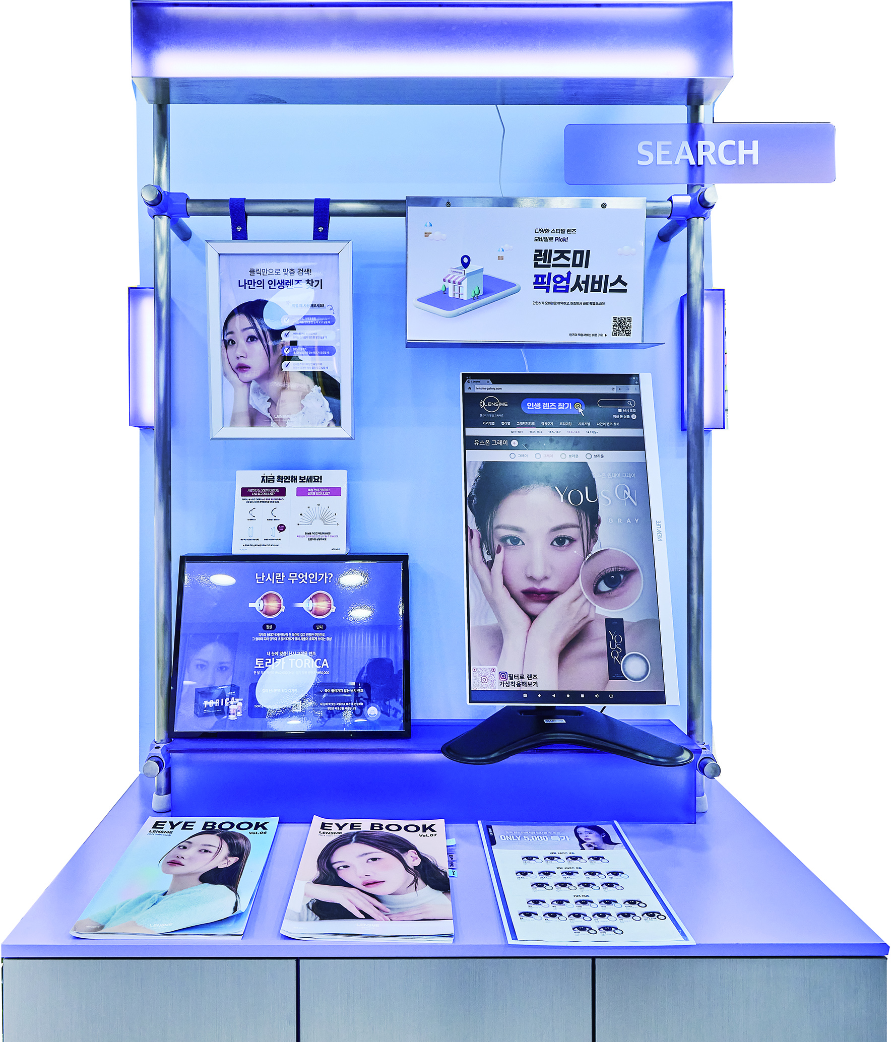 그중 압도적인 것은 앞서 언급했던 서치존인데 고객이 매장에 마련된 기기를 통해 직접 터치 스크린을 조작, 자신의 인생렌즈를 찾을 수 있도록 특별한 경험을 제공한다. 자신의 퍼스널 컬러, 선호하는 직경, 컬러, 서클 디자인, 착용주기, 가격대 등을 선택하면 해당 조건과 딱 맞는 제품이 추천된다.