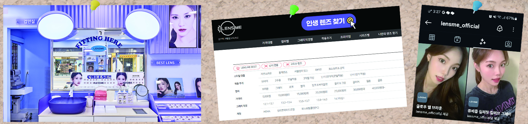 또 인생렌즈 찾는 것에 즐거움을 느끼게 된다면 아무래도 매장을 찾는 횟수가 늘어날 것이고 결국에는 판매로 이어질 가능성이 매우 높다. 렌즈미 매장이 제품을 구매하는 곳이라는 한정적 이미지보다 약속시간이 남았을때 혹은 번화가에 놀러나왔는데 딱히 즐길거리가 없을때 자연스럽게 방문할 수 있도록 문턱을 낮추는 것부터 시작하고 있다.