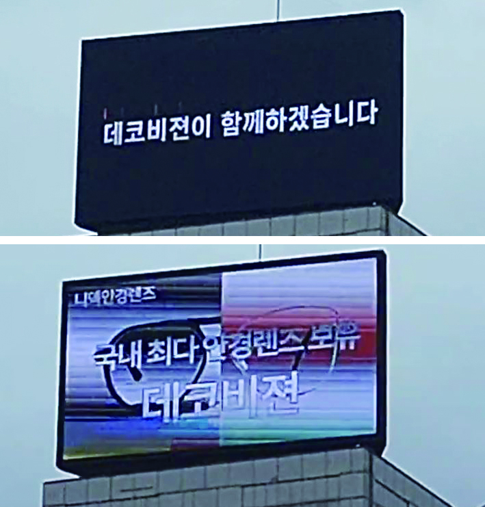 한편, 데코비젼은 신제품 출시를 기념하기 위해 서울 홍대에 위치한 대형 빌딩에 옥외광고를 진행하고 있다. 광고에는 니덱 안경렌즈를 알리는 홍보영상이 송출되며 뛰어난 기술력, 합리적인 가격을 강조하고 있다.