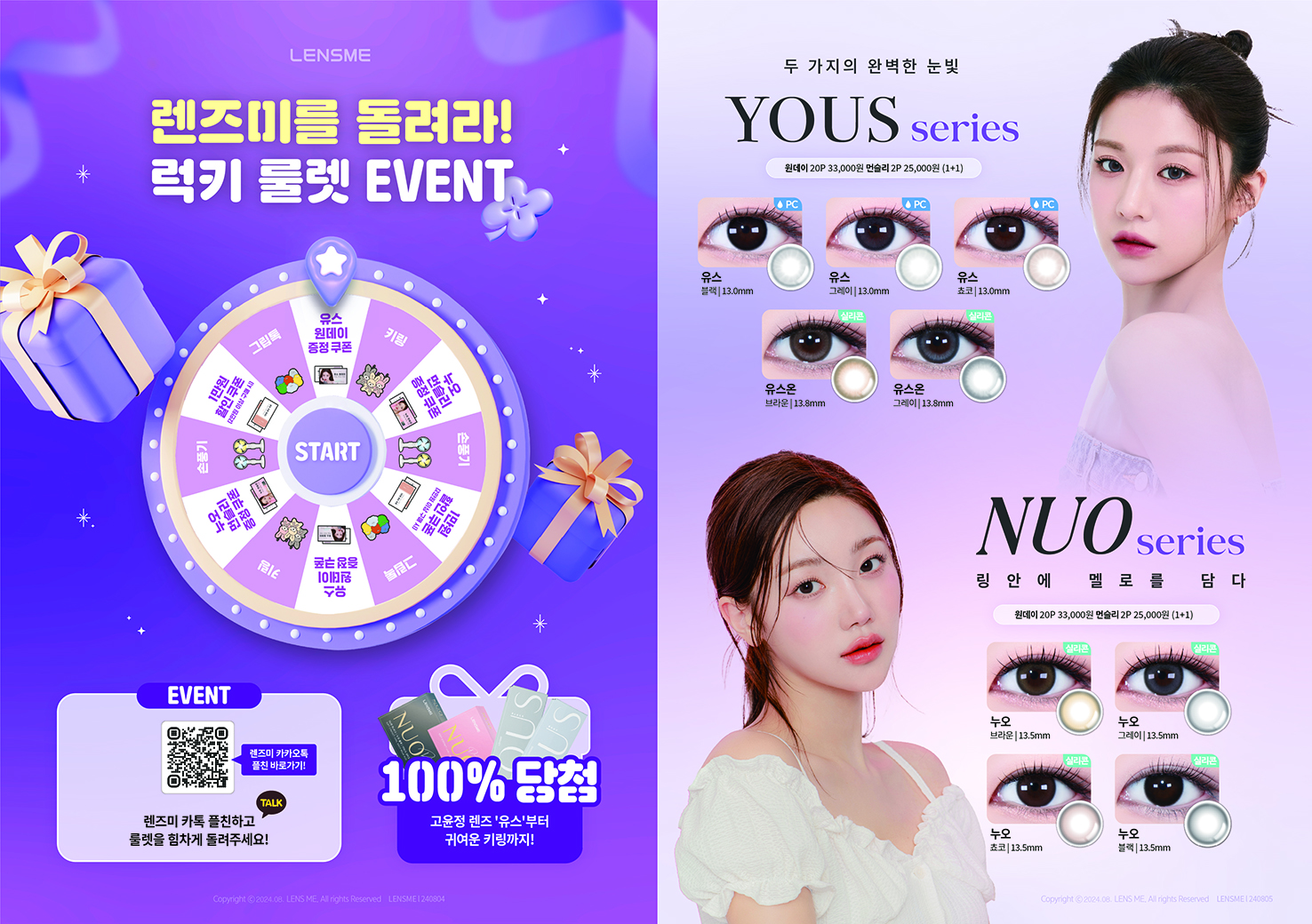 렌즈미는 일명 고윤정 렌즈인 ‘유스 원데이’와 한달착용 ‘누오’ 제품 등을 적극 홍보하는 한편, 쿠폰을 증정하며 렌즈미 매장 방문을 적극적으로 유도했다.
