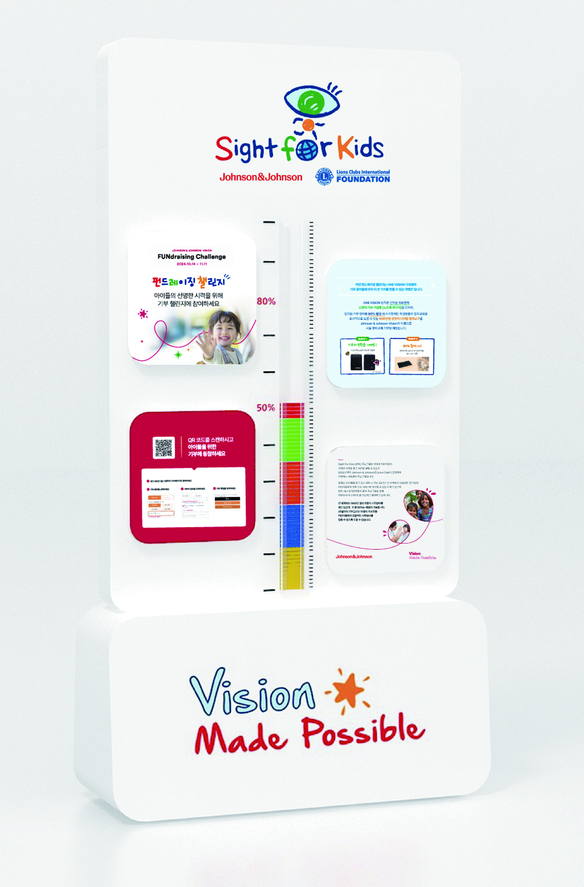 한국존슨앤드존슨 비젼은 매년 SFK 기부 모금 릴레이를 진행함으로써 어린이들이 안건강 서비스를 이용할 수 있도록 기회를 제공하고 있다. 펀드레이징 챌린지 기간 동안 기부 현황 진행을 직접 시각적으로 확인할 수 있도록 펀드레이징 타워를 사무실 로비에 설치, 많은 임직원들이 사회 공헌에 동참하고 이를 공유할 수 있도록 진행하고 있다.