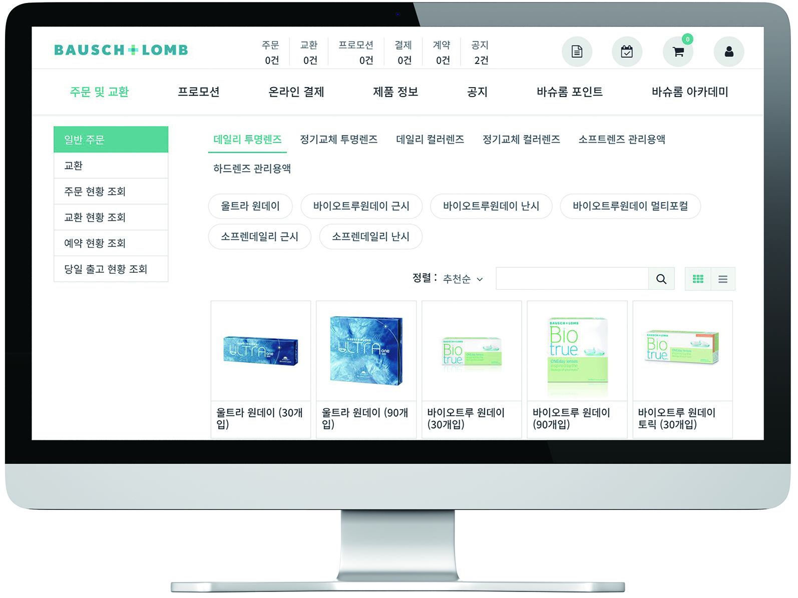 바슈롬코리아(대표 김형준)가 안경원 주문 사이트를 새롭게 리뉴얼 오픈했다고 최근 밝혔다. 바슈롬코리아 측은 이번 리뉴얼을 통해 제품 주문이 한층 더 쉽고 편리해졌음은 물론 다양한 기능도 추가됐다고 밝혔다.