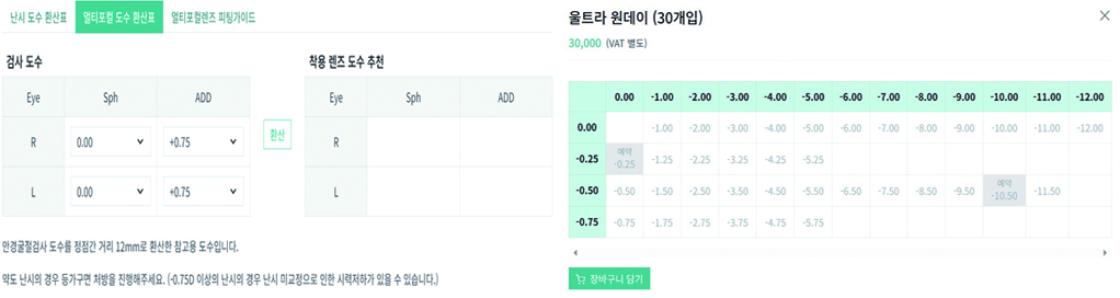 리뉴얼 된 사이트에서는 개선된 도수 선택 화면을 통해 신속한 주문이 가능하다. 안경원에서 재고가 없는 도수의 제품을 ‘예약’ 기능을 이용해 주문할 수 있으며, 해당 제품이 입고되면 자동으로 주문 전환된다.