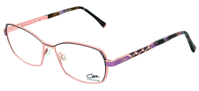카잘 1288-004 모델은 트렌디한 쉐입과 템플의 화려한 컬러와 쥬얼리 장식이 매력적인 제품이다. 쉐입 상단의 레이어드 된 라인이 유려하고, 템플 라인과의 조화도 아름답다.