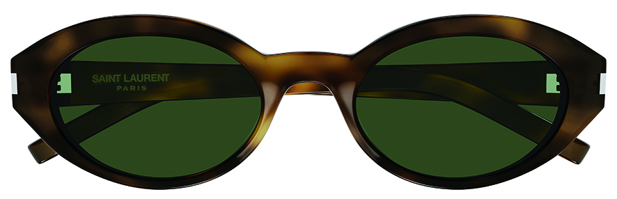 생로랑 ‘SL 567’ 제품은 오발 실루엣의 풀 아세테이트 선글라스다. 생로랑의 시그니처 메탈 코너 장식이 특징이다.