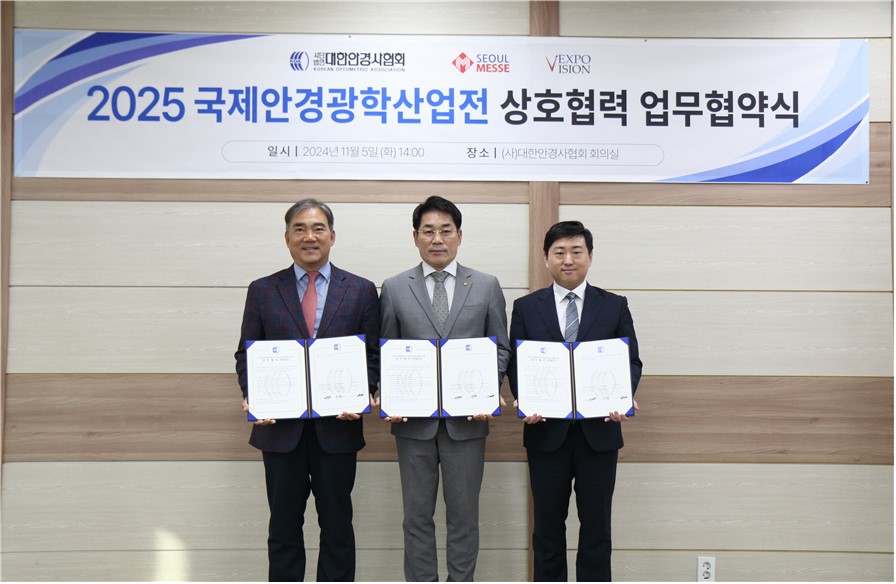 (사)대한안경사협회(협회장 허봉현·이하 대안협)가 지난 5일, 전시전문 기업인 (주)서울메쎄, 엑스포비전과 업무협약을 맺고 2025년 국제 안경광학산업 전시회의 성공적 개최를 위한 본격적인 준비에 나섰다고 최근 밝혔다. 국제안경광학산업 전시회는 내년 11월 20일부터 22일까지 서울 코엑스 마곡에서 열릴 예정이며, 수도권에서 치러지는 국제 전시회이기 때문에 업무협약 이전부터 업계 관계자들의 비상한 관심을 받아 왔다.