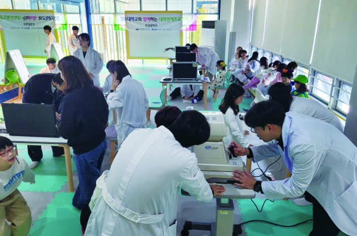 경동대학교 안경광학과가 최근 강원도 원주 ‘THE자람 늘봄센터(센터장 이은정)’에서 초등학교 1~2학년 학생 92명을 대상으로 시력검사와 함께 아이들에게 맞는 안과적 솔루션을 제공하는 등의 재능나눔 활동을 펼쳤다고 지난 4일 밝혔다.