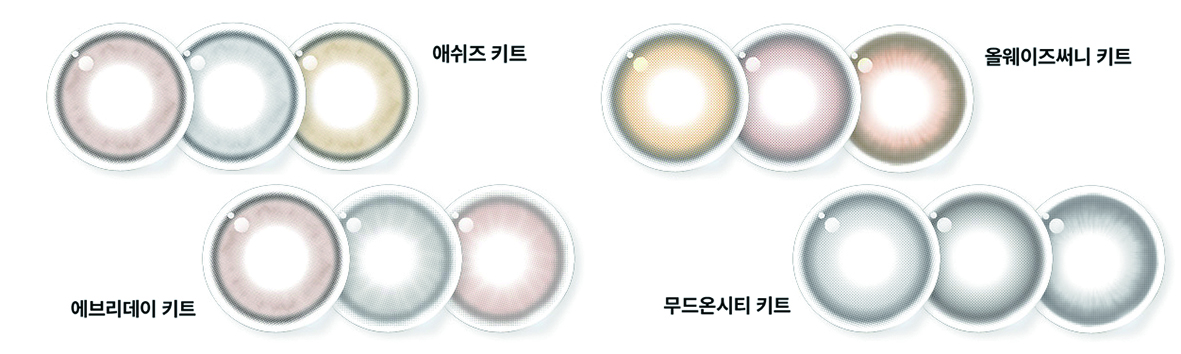 렌즈미는 고객들의 선호도가 높은 제품들을 구성해 총 4가지 종류로 출시했다. 전속모델로 활동 중인 고윤정의 눈빛이 돋보이는 ‘애쉬즈 키트’, 톤 구별없이 대중성있게 조화를 이룬 ‘에브리데이 키트’, 웜톤들에게 추천할 수 있는 컬러감의 ‘올웨이즈써니 키트’, 쿨톤들에게 잘 어울리는 시크한 ‘무드온시티 키트’ 등 4종류다. 애쉬즈뿐만 아니라 누오, 유스 시리즈도 포함돼 있다.