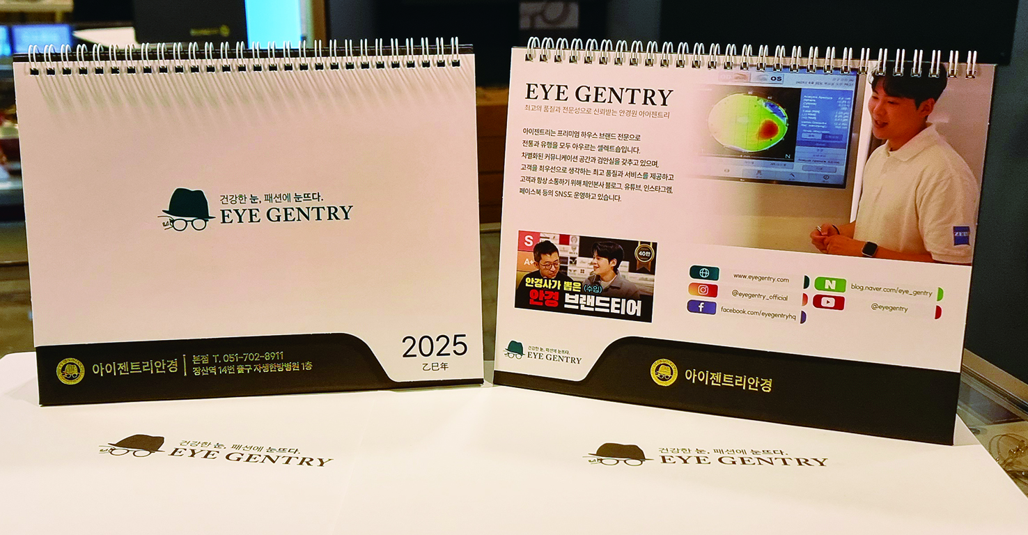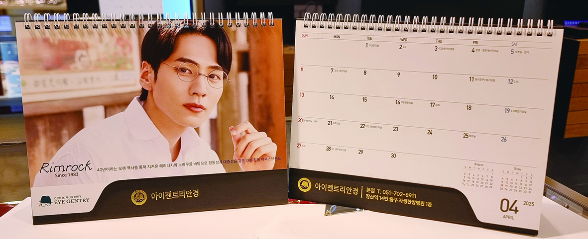아이젠트리가 이번에 제작한 달력은 고급 종이로 제작됐으며 안경, 안경렌즈, 콘택트렌즈 등 총 12개 브랜드 화보를 담고 있어 전시용으로도 더욱 인기가 좋다. 또 아이젠트리 브랜드 소개, 배포하는 가맹점의 위치 및 전화번호 등이 금박 글씨로 제작돼 홍보효과도 뛰어나다는 후기다. 무엇보다 달력 맨 뒷장에 한 해 동안 사용할 수 있는 쿠폰을 삽입, 더욱 반응이 뜨겁다.
