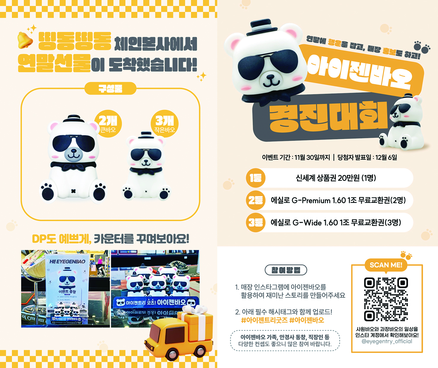 가맹점주를 위한 두 번째 행사는 아이젠트리의 공식 굿즈인 ‘아이젠바오’ 탄생을 기념하기 위해 경진대회 이벤트를 준비 중이다. 아이젠바오 이벤트는 총 300만원 상당의 상품이 걸려 있으며 SNS를 통해 전국 가맹점주들을 대상으로 진행하고 있다.