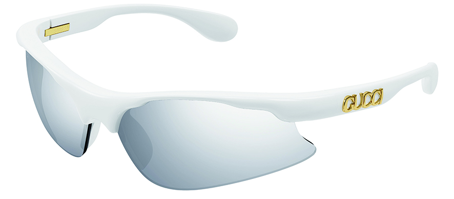 구찌 아이웨어 ‘GG1774S’ 모델은 감싸는 형태의 볼드한 마스크 프레임의 선글라스다. 마치 스포츠 고글을 더욱 트렌디하게 재해석한 디자인이 인상적이다. 템플에 새겨진 입체적인 구찌 로고와 새하얀 화이트 컬러의 조화가 한층 더 고급스러움을 장착했다.