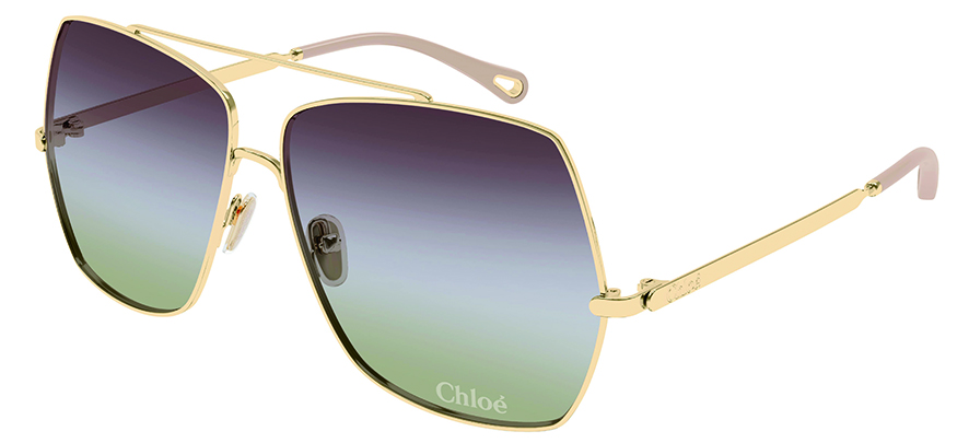 케어링 아이웨어가 전개하는 끌로에 ‘CH0278S’ 모델은 직사각형 프레임의 선글라스로 메탈 소재의 더블 브릿지 디자인이 특징이다. 왼쪽 렌즈에는 레이저로 새겨진 로고와 템플 팁에는 물방울 모양 장식이 눈에 띈다.