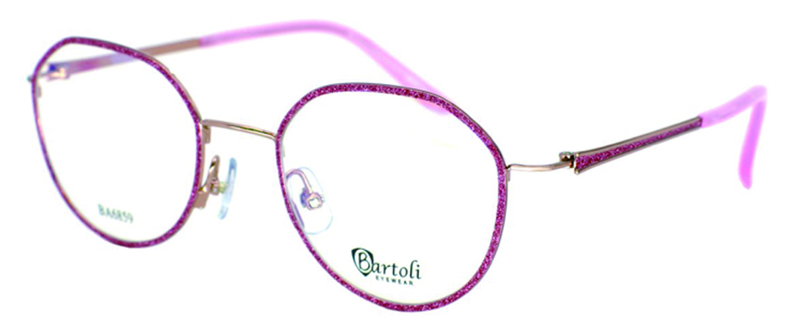 바르톨리 BA6859 col.1 모델은 최고급 스테인리스 소재와 아세테이트, 폴리에스테르 소재가 어우러진 제품이다. 프론트와 템플의 글리터 장식이 유려하고 아름다우며, 섬세하게 제작된 글리터 장식은 반영구적으로 아름다운 컬러를 뽐낸다.