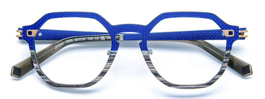 제이에프레이 JF3082 모델은 맨즈 컬렉션 신제품으로 우아함과 혁신이 결합된 쉐입이 눈에 띈다. 천연 목재, 탄소 섬유, 컬러 유리 및 아세테이트와 같은 고급 소재 등이 수작업으로 조화를 이루고 있으며, 특허받은 나사없는 플렉스가 적용된 템플은 편안함을 보장한다.