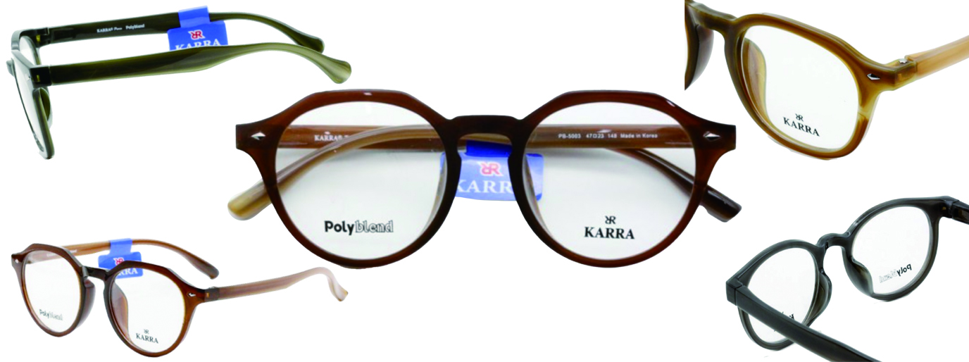 새로운 KARRA 시리즈인 ‘폴리블렌드(PolyBlend)’는 아세테이트의 광택과 느낌은 그대로 가져가지만 아세테이트 보다 가볍고 변형이 일어나지 않는 친환경 폴리머 소재를 사용한 것이 특징이다.