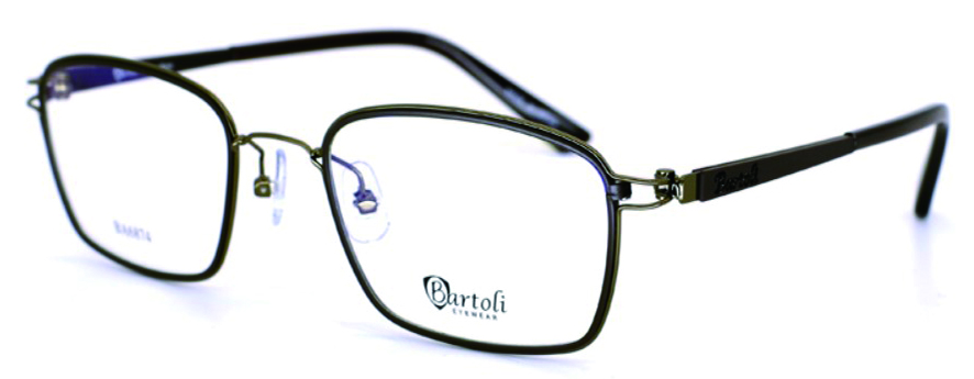 바르톨리 BA6874_C3 모델은 듀얼림 구조의 제품으로 18g의 가벼운 무게감을 자랑한다. 렌즈를 견고히 잡아주는 이중 림이 포인트이며, 심플하고 컬러풀하다. 템플의 화려한 로고 플레이도 눈에 띈다.