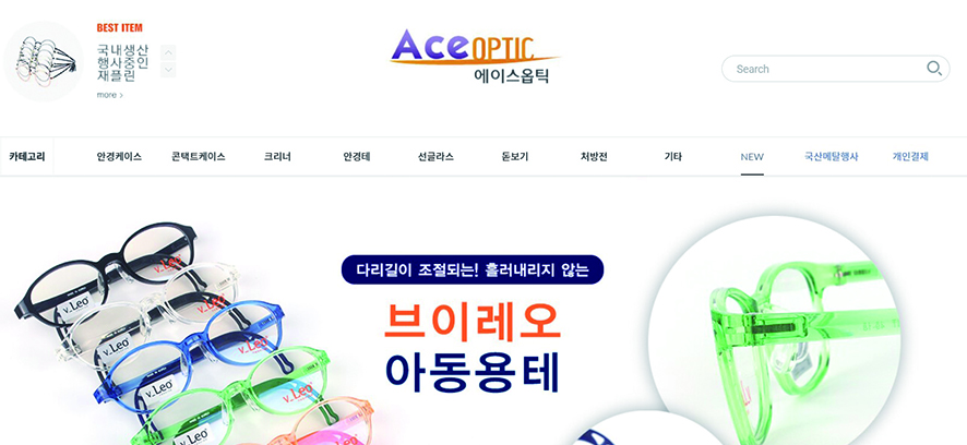 국내 안경시장에서 전통과 관록을 자랑하는 에이스옵틱은 품질 높은 케이스와 클리너를 비롯해 기능성 안경 및 다양한 안경용품은 물론 합리적인 가격대로 안경사들의 큰 사랑을 받고 있는 ‘재플린’ 아이웨어도 유통하며 국내 대표 안경종합기업으로 꼽힌다.