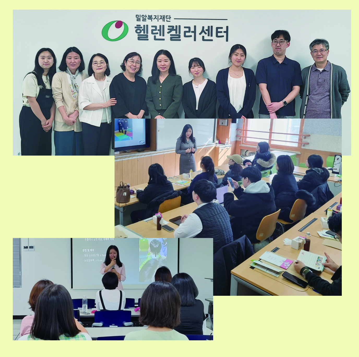 지난해도 부산맹학교 교사 연수(저시력 이해와 시기능훈련), 해운대교육지원청 교수 연수(시기능이상으로 주의집중이 어려운 유아지도의 실제), 울산교육청 학부모 연수(저시력학생 시기능훈련의 필요성), 부산장애인가족지원센터 학부모 연수(저시력 시기능평가와 시기능훈련), 밀알복지재단 헬렌켈러센터 교사 연수(시각장애 보행과 시기능훈련)를 지원해 학부모와 교육자들에게 시각장애와 시기능훈련에 대한 인식을 증대한 바 있다.