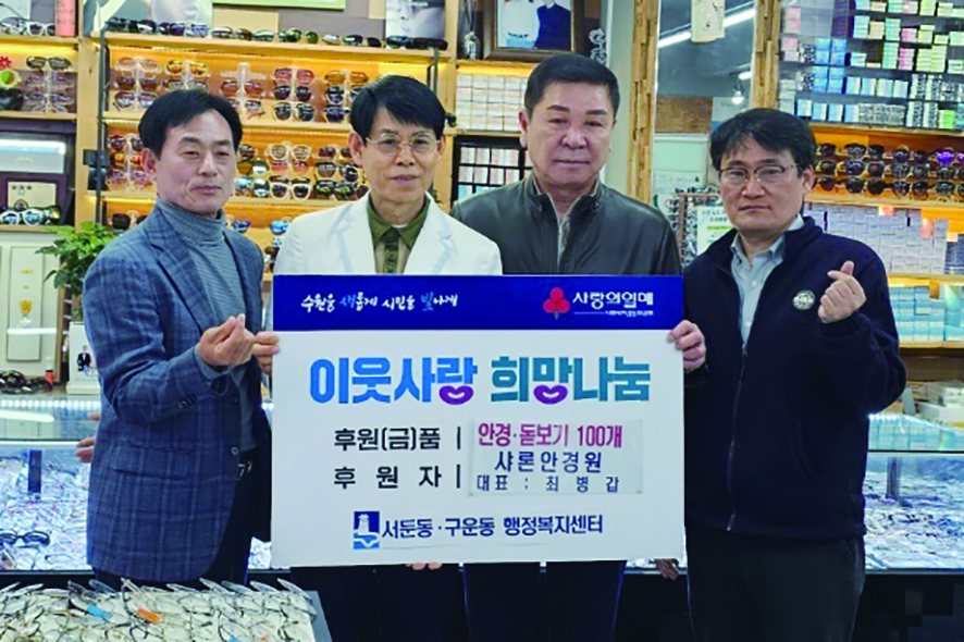 최병갑 안경사는 “시력 문제로 일상생활에 어려움을 겪고 있는 분들이 많은데, 작은 도움이지만 보탬이 되길 바란다”며 “앞으로도 지역사회의 어려운 이웃들에게 지속적으로 관심을 가지고 다양한 방법으로 지원하고 싶다”고 말했다.