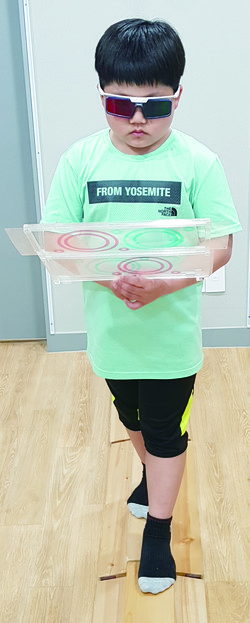 이에 맞춰 프리즘 안경을 처방했지만 복시가 너무 심해 잔여 복시가 확인돼 시기능훈련을 병행하게 됐다. 약 6개월간 진행된 훈련은 초기부터 단계적으로 진행해 갔다.
