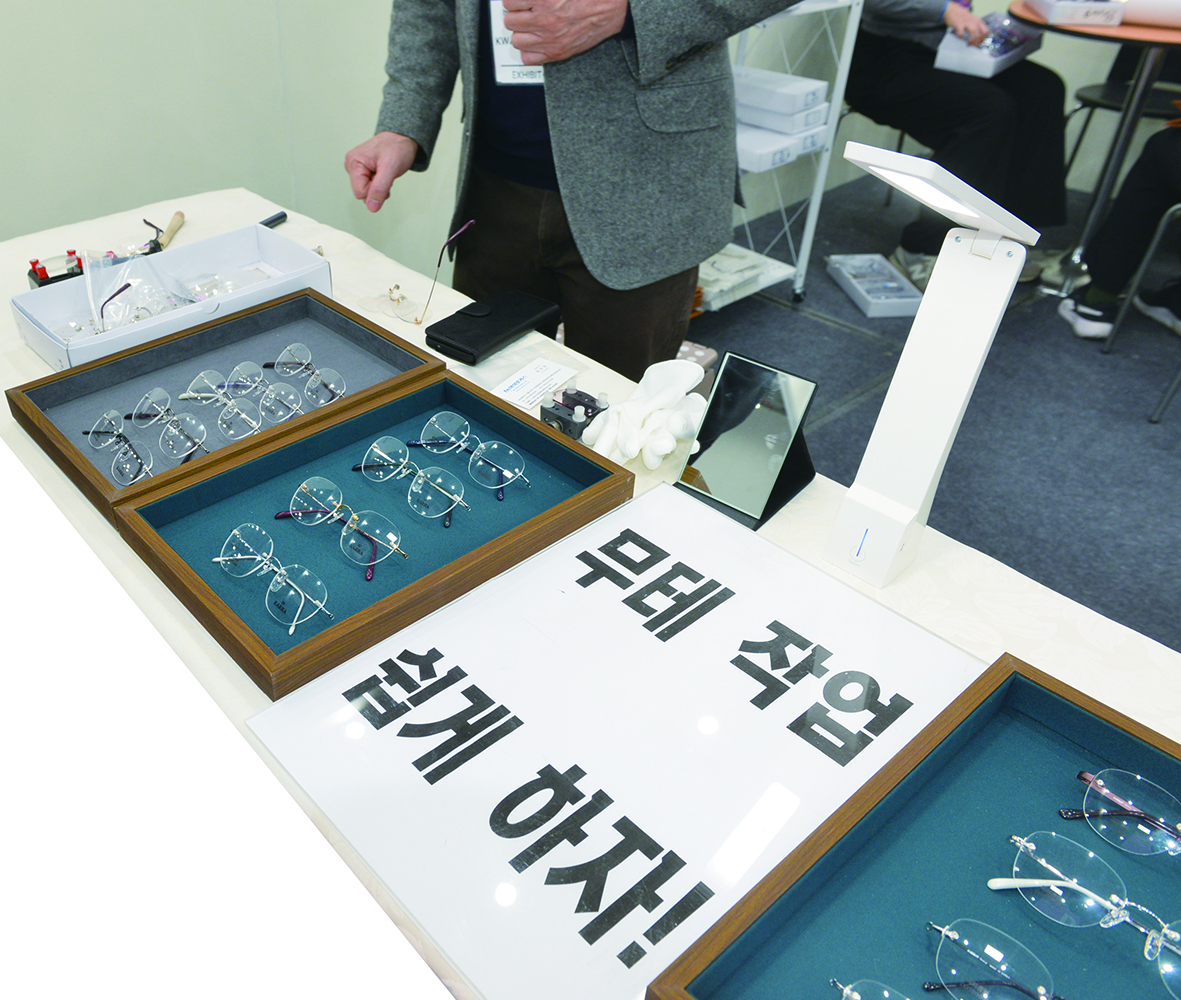 박광수 대표는 “현재 특허 출원 중인 우리 무테 제품은 초보 안경사 분들도 손쉽게 무테를 가공해서 판매할 수 있게 만들어 졌다. 렌즈에 홈을 정확히 뚫지 않아도 부속과 나사가 맞춤 결합돼 드라이버로 돌려주면 렌즈와 알맞게 밀착이 된다”며 “초보 안경사 분들도 5분 안에 무테 작업이 가능하다. 원리는 특허출원 중인 부속이 미끄럼틀처럼 돼 있어 나사가 렌즈에 저절로 밀착될 수 있는 구조로 돼 있다. 무테 전용 드릴이 아니어도 일반 드릴로도 작업이 가능한 것이 특징이다. 안경사 분들의 많은 관심을 바란다”고 말했다.