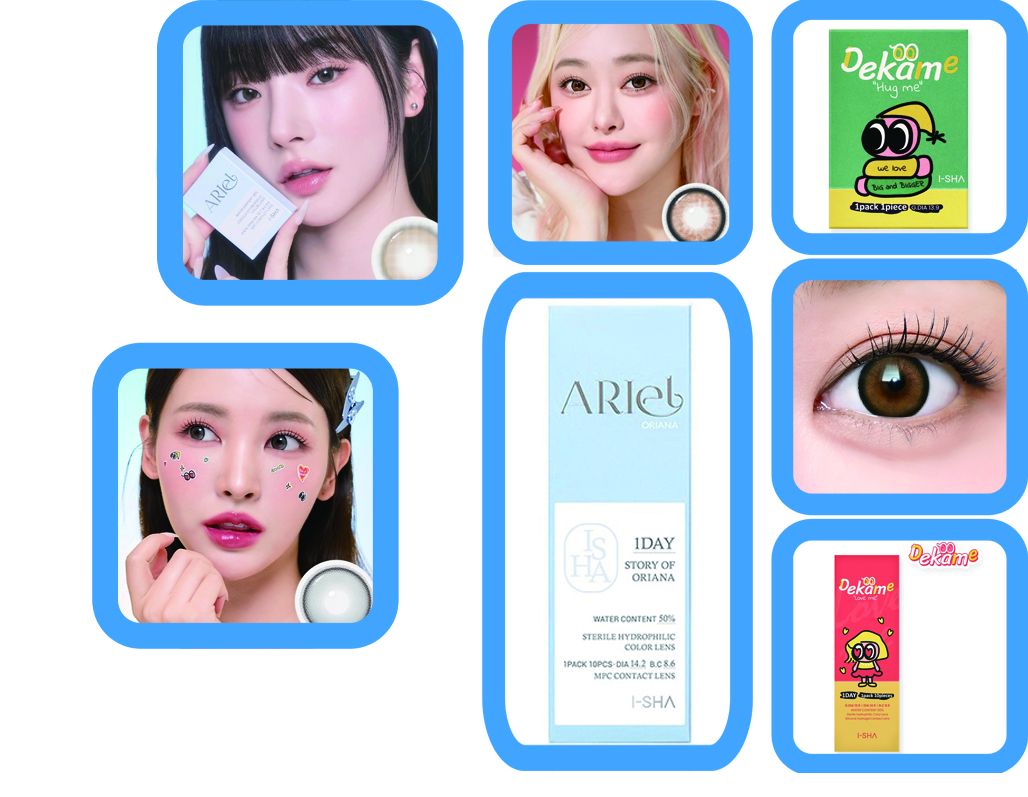 한편 아이샤가 판매 중인 제품들도 편안하고 화려한 패턴 디자인으로 소비자들에게 큰 인기를 얻고 있다. 아이샤 ‘데카메’ 시리즈는 원데이와 한달용으로 출시됐으며, 얇고 샤프한 엣지 스타일의 허그미(Hugme)와 볼드한 엣지 스타일의 러브미(Loveme)가 대표 제품이다. 데카메는 왕눈이라는 일본어로 직경이 일반 콘택트렌즈보다 큰 것이 특징이다. 그래픽 직경이 13.6mm~13.9mm로 눈동자가 또렷하게 보이길 원하는 여성 소비자들로부터 많은 사랑을 받고 있다.